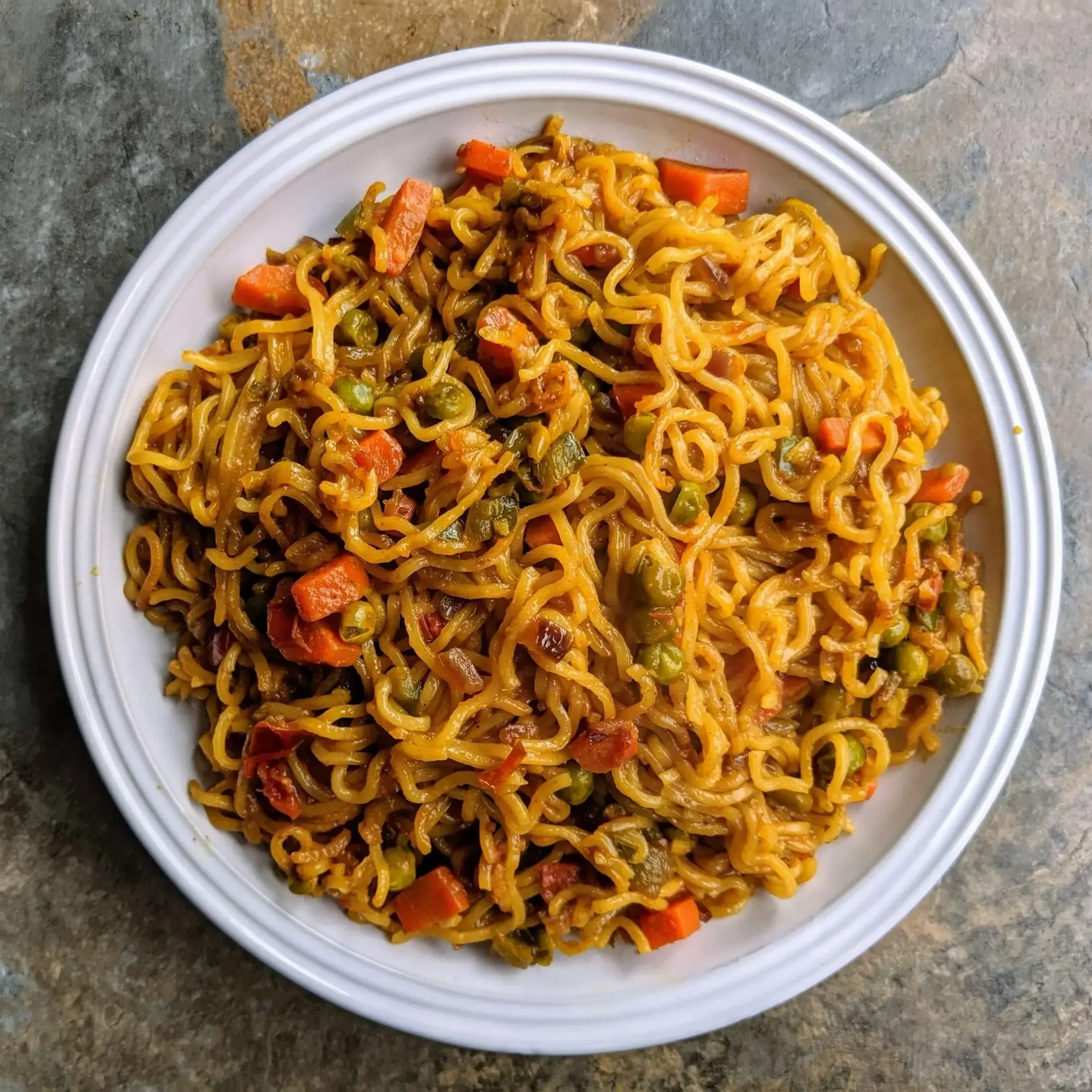 Maggi served hot on a sizzling plate with a special smoky pure veg sauce. An exciting, aromatic presentation.